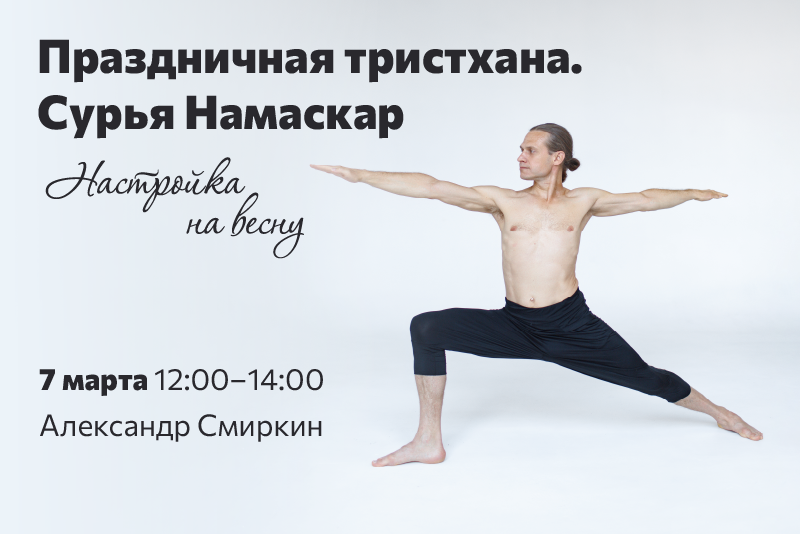 «Тристхана воплощает в себе основной принцип йоги — обретение контроля над телом, дыханием и умом. На классе, приуроченном ко Дню женщин, мы настроимся на весну вокруг и внутри нас: приведем тело в тонус через практику асан и виньяс, сбалансируем нервную систему через пранаяму, успокоим ум через работу с вниманием в Шавасане».