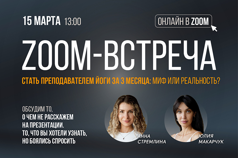 Zoom-встреча «Стать преподавателем йоги за 3 месяца — миф или реальность?»